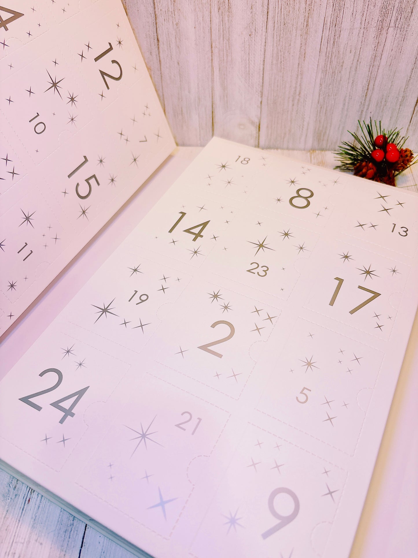 Possibilité d'acheter le calendrier avec des gourmandises pour 1 personne (1 chocolat par fenêtre) ou 2 personnes (2 chocolats par fenêtre).