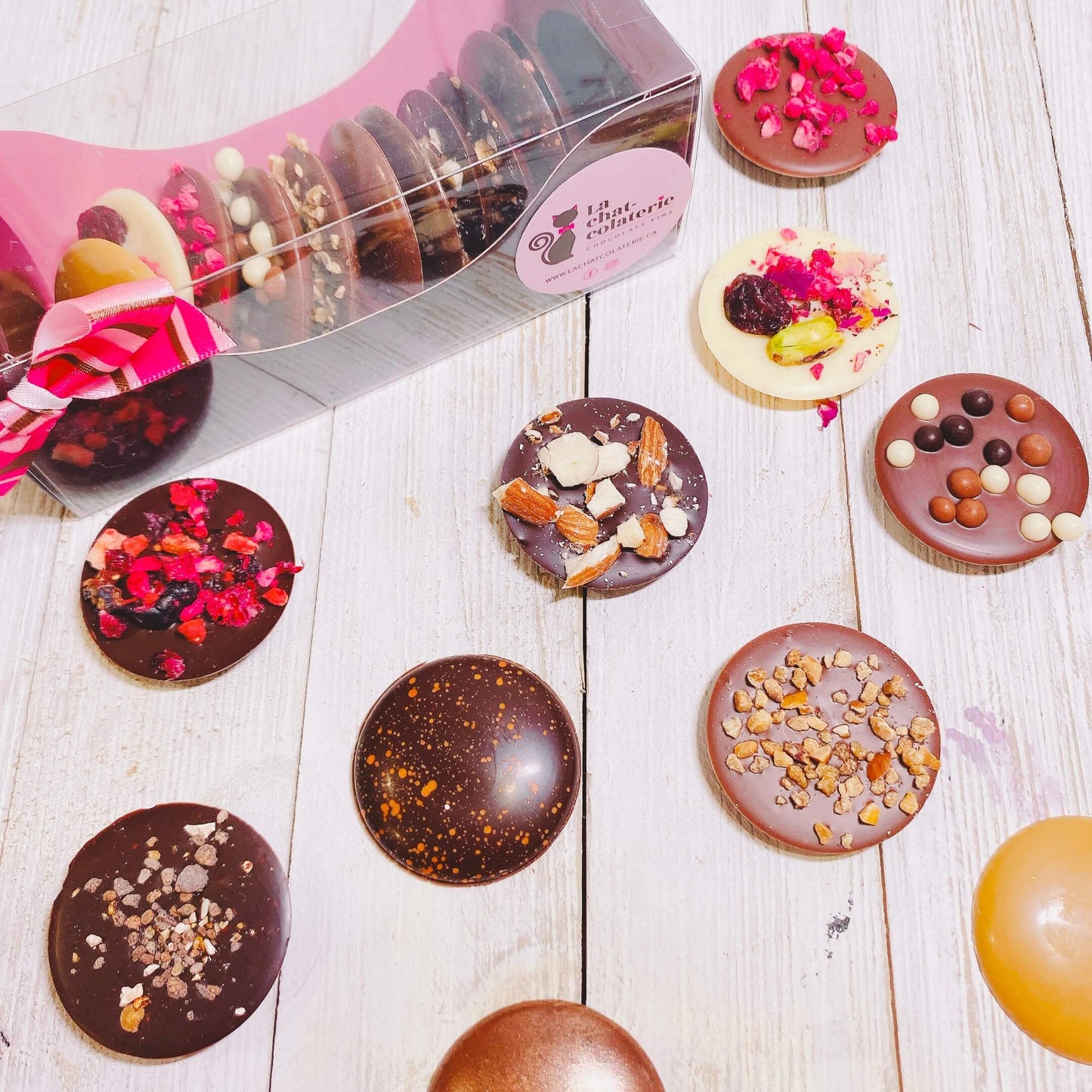 Vous avez envie de faire un voyage des saveurs sans avoir à payer la totale? Je vous propose la boîte découverte qui vous offre 12 rondelles aux saveurs de ma collection des tablettes gourmandes. Une belle introduction à mon monde chat-colaté!