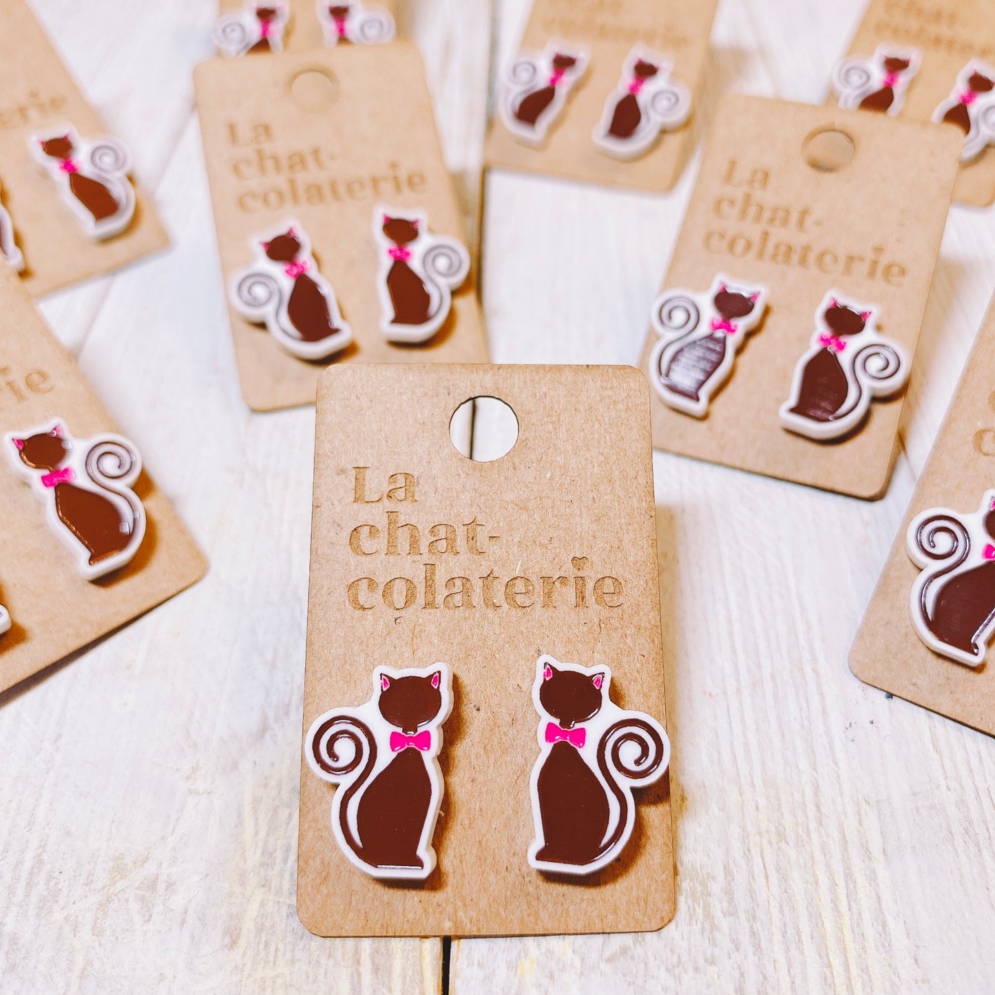 Aimez-vous les chats autant que moi? Aimez-vous nos beaux chocolats faits avec amour? Alors vous êtes la candidate parfaite pour porter fièrement ces belles boucles d’oreilles 😻