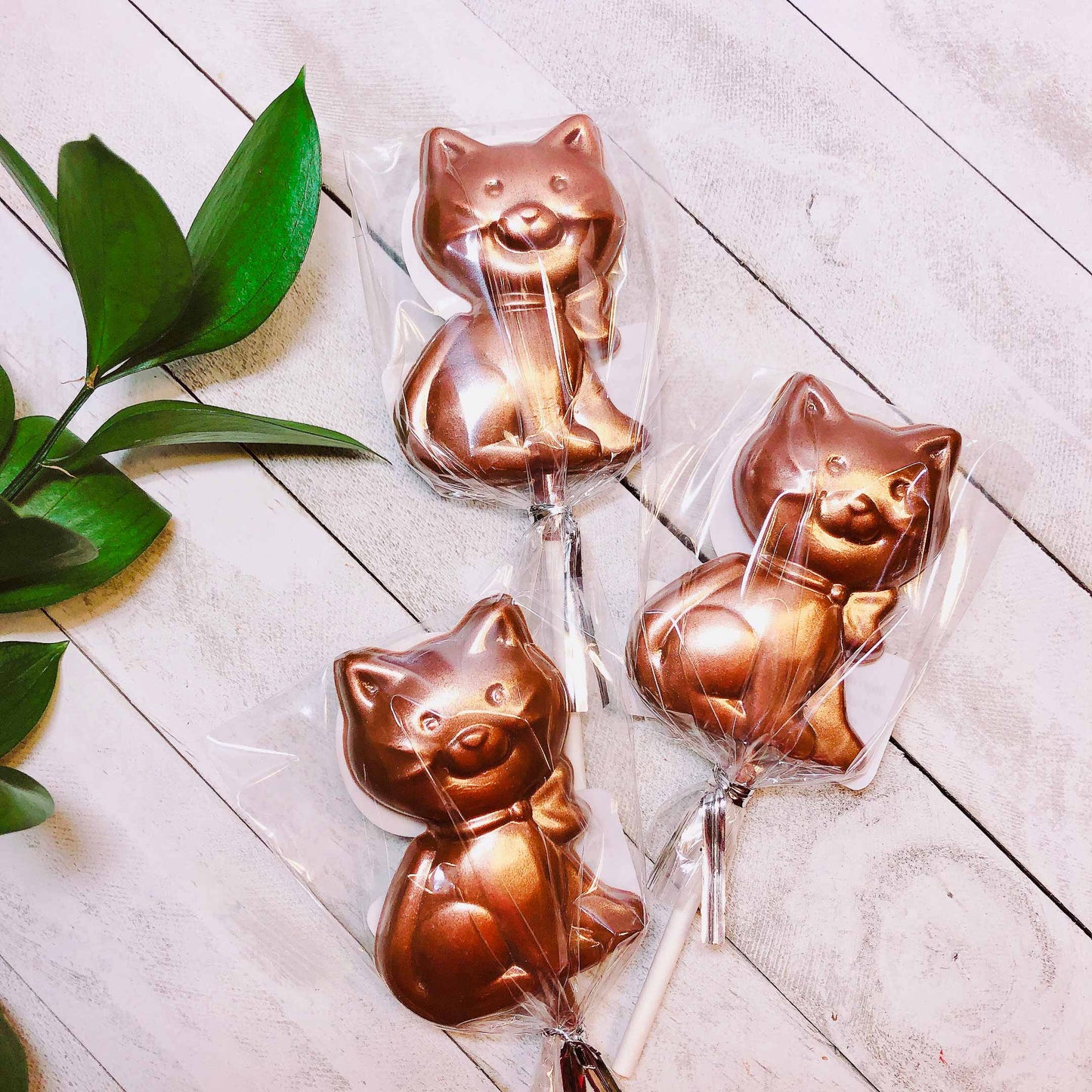 Quand le « trop mignon » rejoins le « c’est délicieux! », le résultat ressemble à ça! Un suçon de chocolat chat-dorable!
