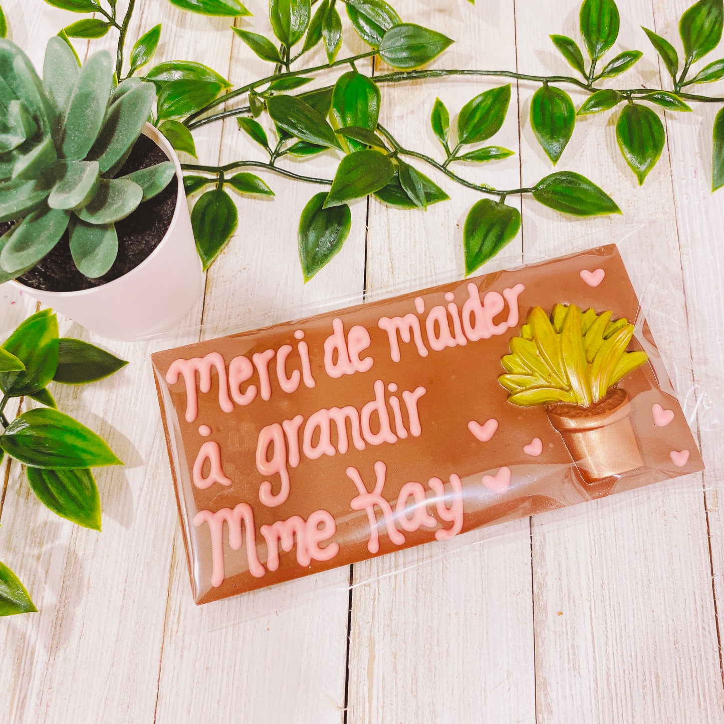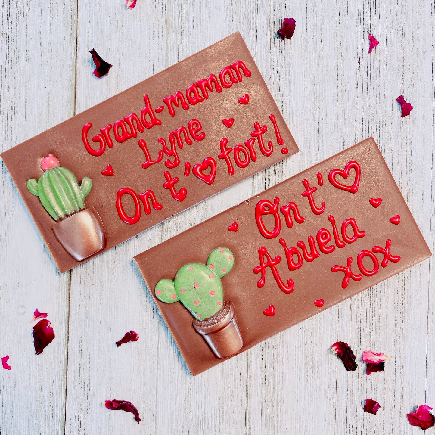 Souhaitez-vous offrir un délicieux choco-cadeau à votre être cher ou le complément parfait pour un cadeau? Pourquoi pas une tablette de chocolat avec un message personnalisé? Petits et grands adoreront cette belle attention!